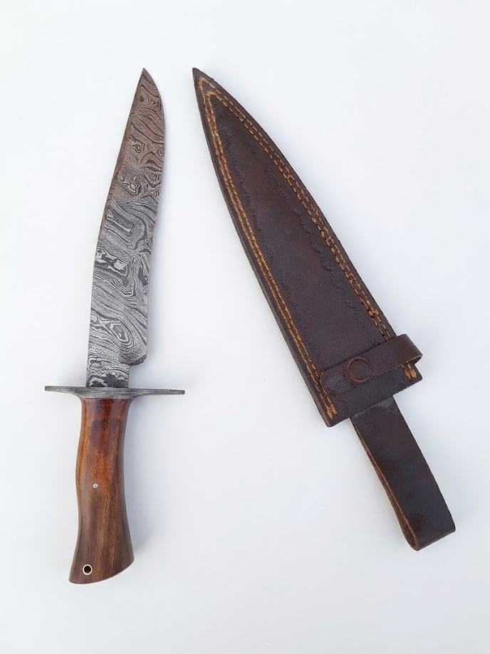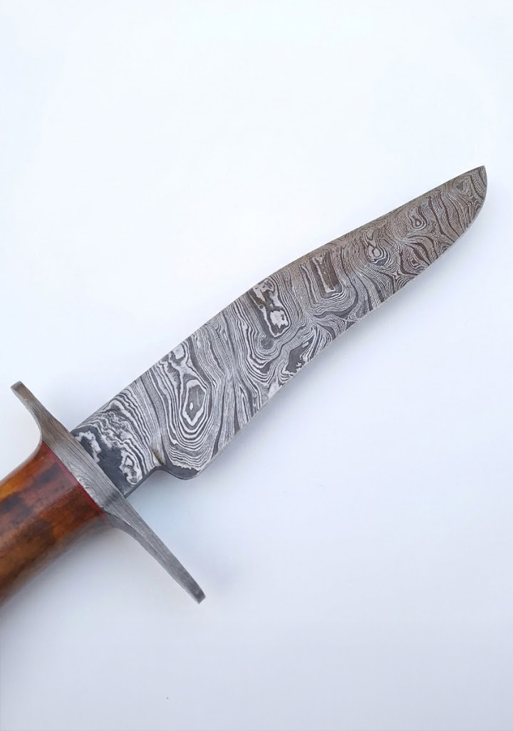 Elevate your collection or outdoor gear with our Damascus Steel Bowie Fire Pattern Knife . Forged from multiple layers of high-carbon steel, this blade is more than just a tool—it’s a striking piece of functional craftsmanship. Each knife features the iconic flowing Damascus patterns such as “ladder” or “raindrop,” making every blade truly one of a kind.