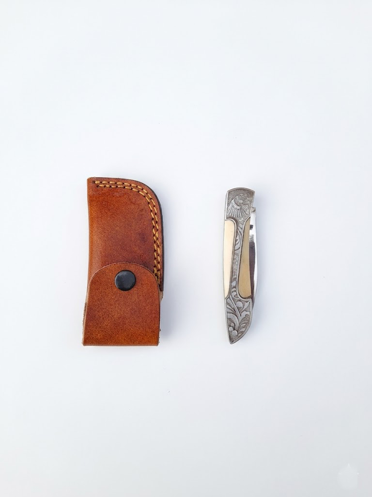 With a secure folding mechanism and a comfortable grip, this knife is ideal for outdoor use, everyday carry, and light-duty tasks. The addition of a pure leather sheath ensures safe storage and easy portability.