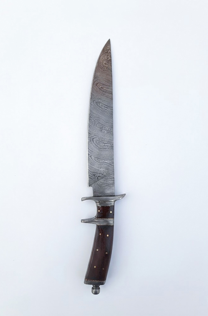 The 6-inch handle is a refined blend of artistry and control, featuring a Damascus guard paired with rich rosewood. This combination delivers a luxurious feel, enhanced grip, and a warm, natural aesthetic that elevates the overall design into a statement piece.