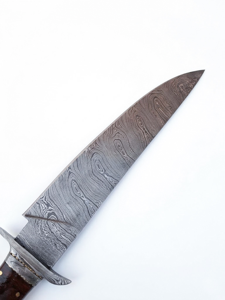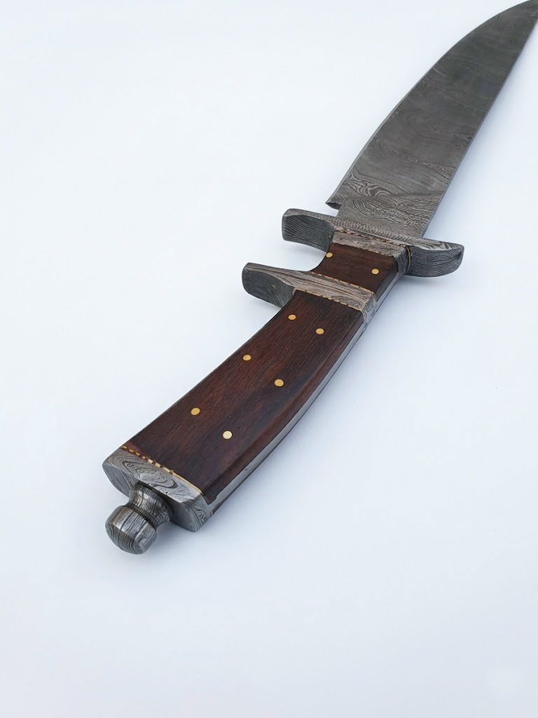 Engineered for those who demand uncompromising power and timeless elegance, this 16-inch full tang Damascus blade stands as a true testament to masterful craftsmanship. Designed with a commanding presence, its 10-inch blade is forged from premium Damascus steel, showcasing mesmerizing layered patterns—each one unique, each one a mark of authenticity.